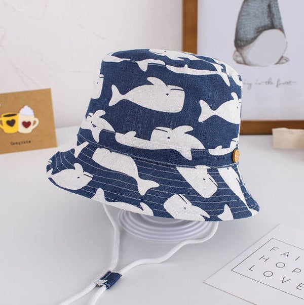 Zonnehoedje Vissershoedje - blauw walvis - baby dreumes (3-15 maanden) - Maat 48