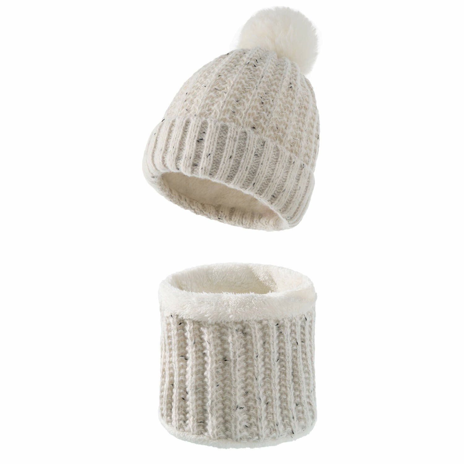 Dames Muts en Colsjaal – Crème – Warme Winterset met Fleece Binnenvoering