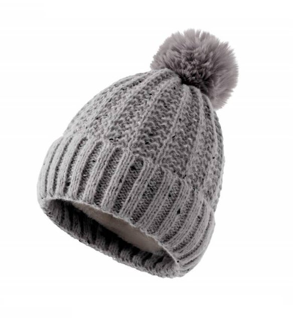 Dames Set Muts Pompom Colsjaal - Grijs - Warme Winterset met Fleece Binnenvoering