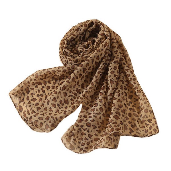 Dunne Zomersjaal - Neksjaal - Omslagdoek - Lichtbruin Luipaard Print (160x50 cm)