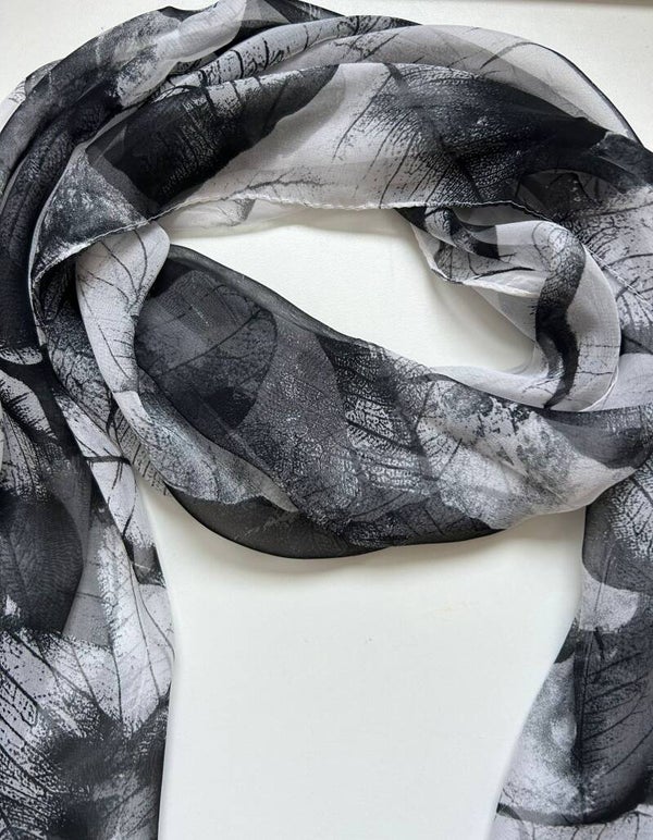 Dunne Zomersjaal - Neksjaal - Feestelijk - Omslagdoek - Zwart Bladeren (160x50 cm)