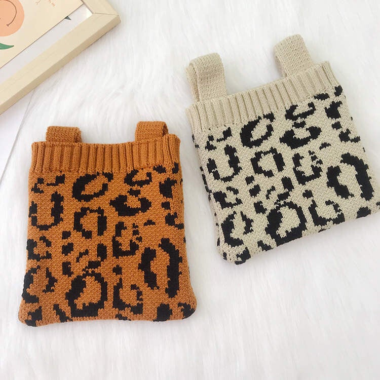Gebreide Meisjes Schoudertas - Wit Zwart Luipaard Print