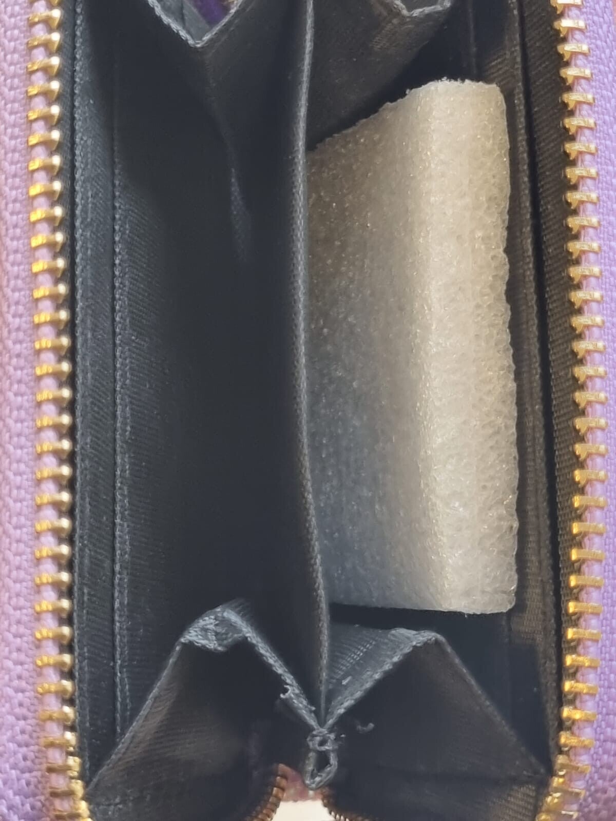 De binnenkant is praktisch ingedeeld met twee vakjes voor briefgeld en vier vakjes voor pasjes, zodat alles netjes en overzichtelijk opgeborgen kan worden. Ideaal voor zakgeld, schoolpasjes of kleine spulletjes.