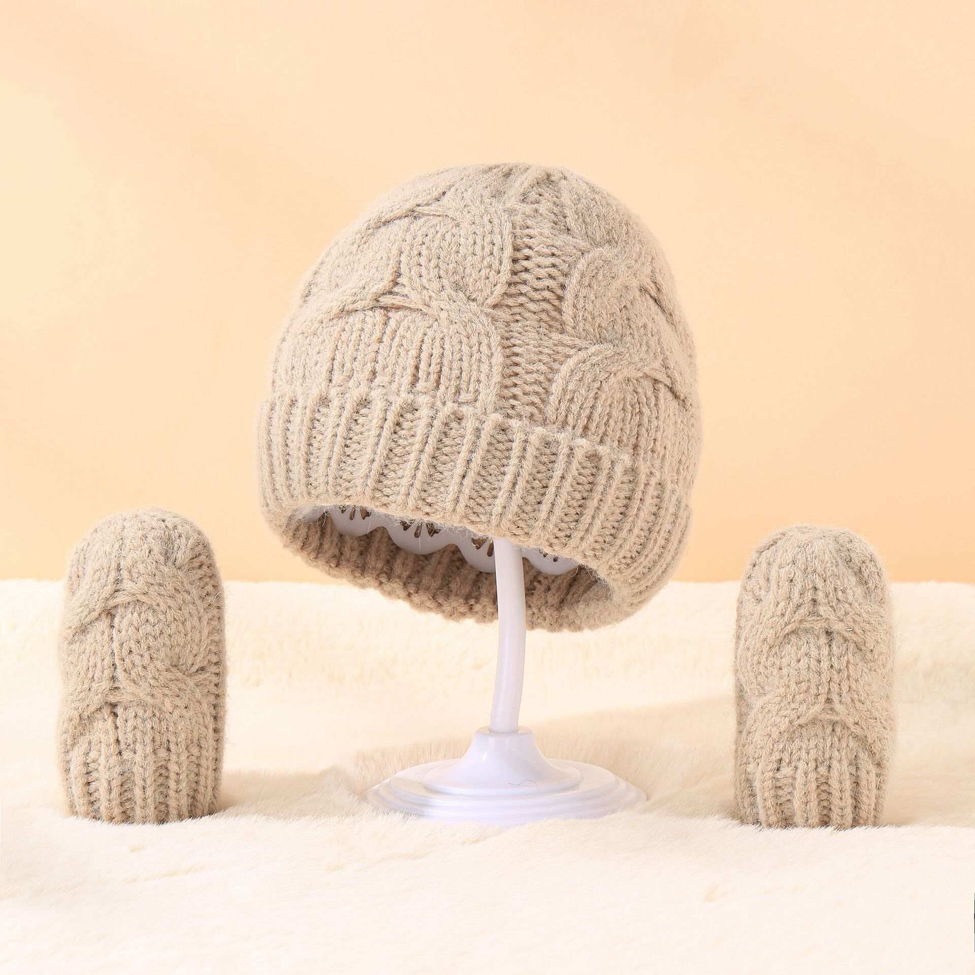 Met dit beige muts- en wantjessetje blijft je baby warm, comfortabel en stijlvol tijdens de koudere dagen.