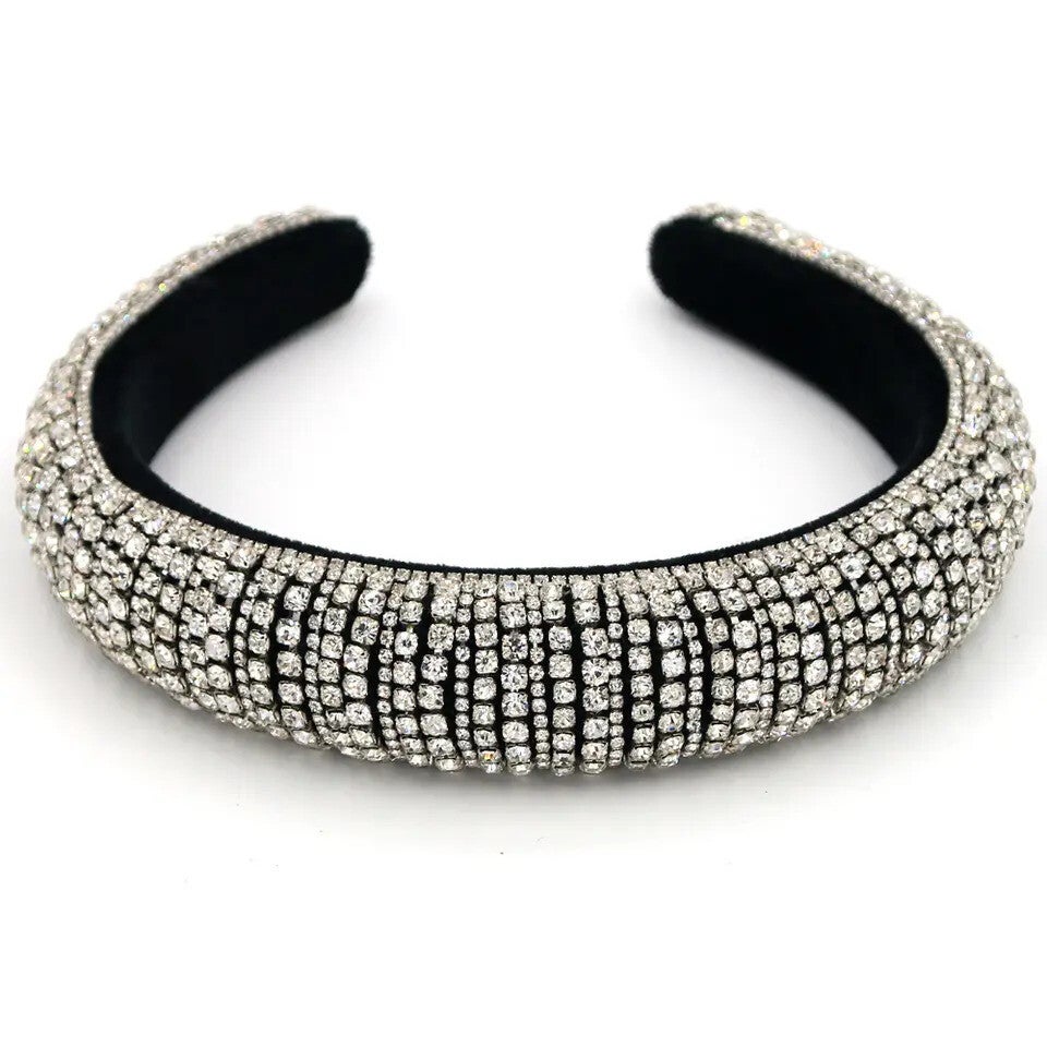 De haarband is volledig bedekt met glinsterende strass steentjes, waardoor hij prachtig schittert in het licht. Dankzij de comfortabele pasvorm blijft hij stevig zitten zonder te knellen – ideaal voor langdurig dragen.