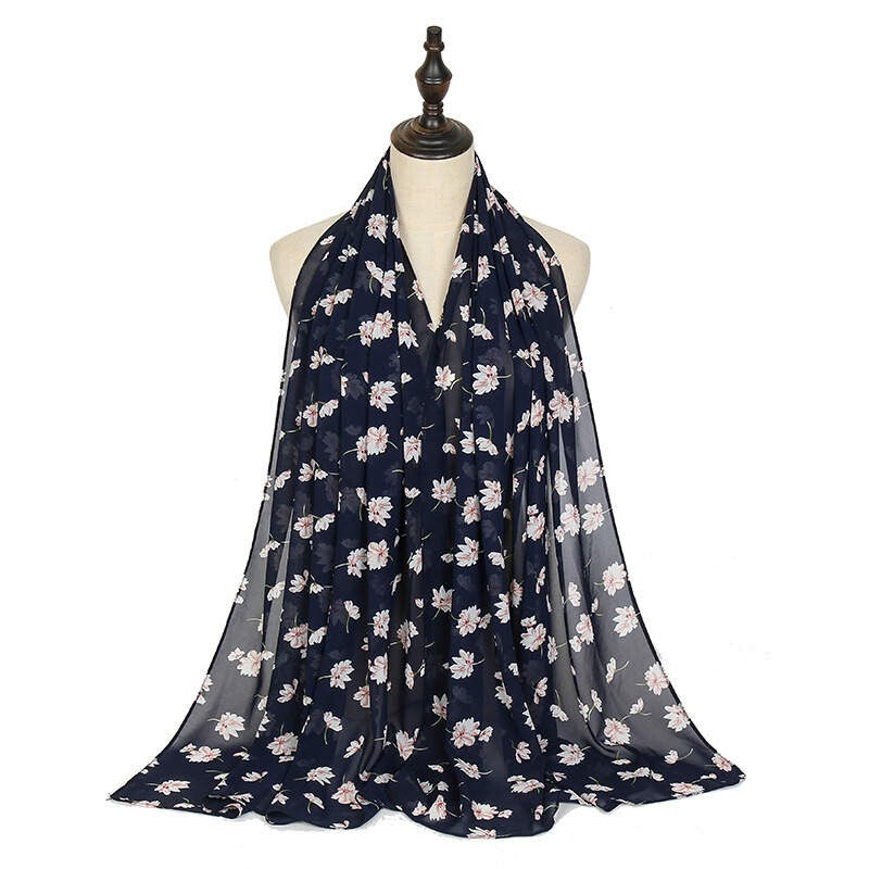 Voeg een vleugje vrouwelijke elegantie toe aan je outfit met deze prachtige dames sjaal in donkerblauw met grote roze bloemen. De sjaal is gemaakt van dun en soepel polyester, waardoor hij licht en comfortabel aanvoelt en mooi valt om de schouders.